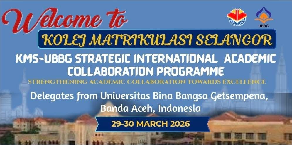 bersama delegasi Universitas Bina Bangsa Getsempena (UBBG), Banda Aceh, Indonesia yang berlangsung pada 29–30 Mac 2026 Di Dewan Roselle, KMS